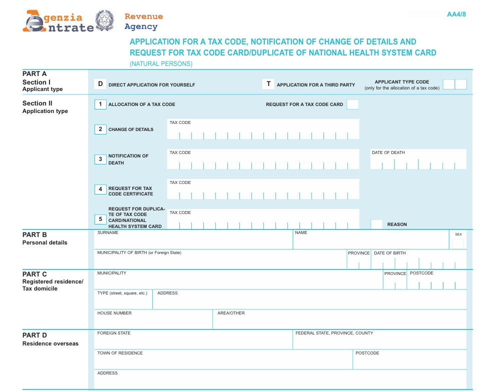 A codice fiscale (or CF) is an Italian tax number – similar to a social security number in the US. It’s free and anyone can get one, both Italians and foreigners. You can either apply at an Italian consulate in your country, in person at any Italian Revenue Agency (Agenzia delle Entrate) or through a service. for around €100.