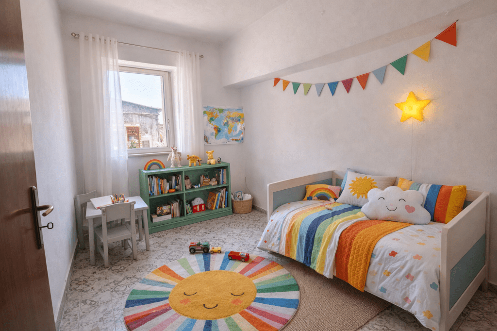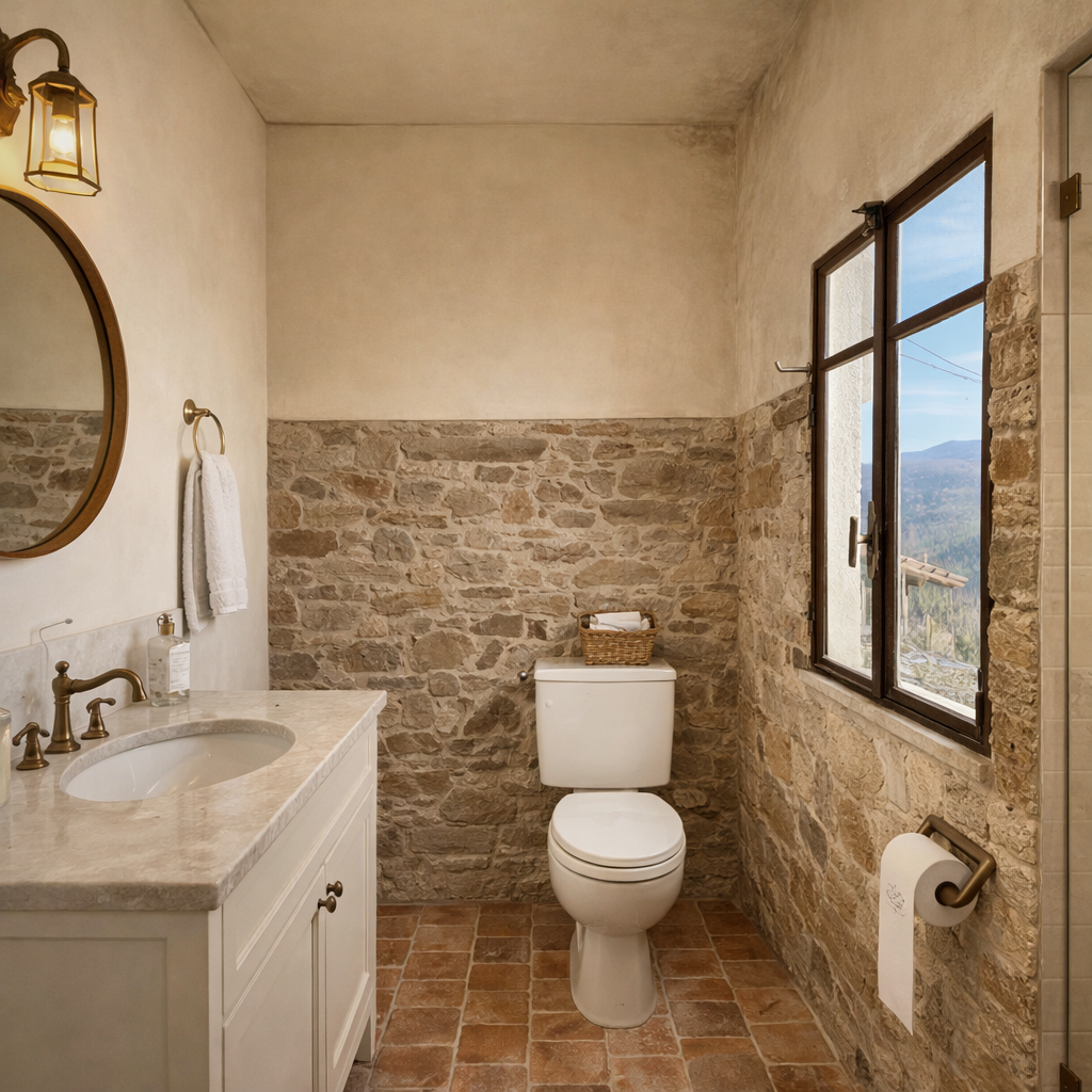 What I love about these renditions is that many of them could feasibly be “diy” on a pretty reasonable budget, with the exception of the kitchen and the super decrepit barn. It’s also kept the rustic Italian style and colors (although in reality I might make the rooms a bit brighter.) I tried to keep this as low-cost and authentic as possible without needing any planning permission. One thing I didn’t like is sometimes the room dimensions are altered a bit. For example, the balconies became much bigger in the renditions.